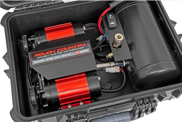 Make your outdoor experiences hassle-free with Rough Country’s Twin Motor Air Compressor and Overland Case. This reliable and compact compressor ensures effortless inflation and deflation, giving you the freedom to focus on your adventures, not your equipment.